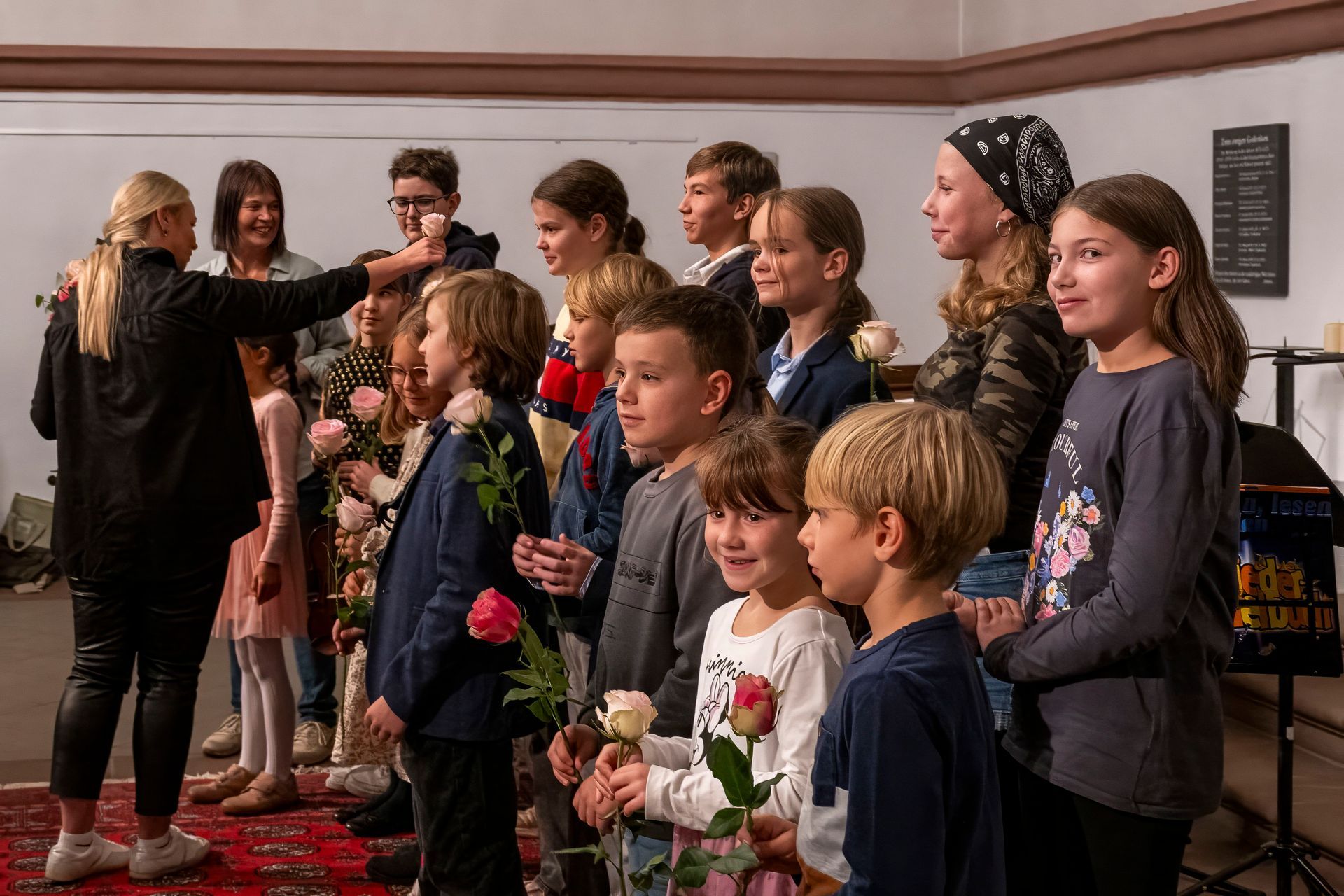 Eine völlig neue Erfahrung, waren doch Improvisation und Fantasie gleichermaßen großgeschrieben. Anfangs war dies womöglich für Einige noch fremd, während die Gruppe allerdings am Sonntagnachmittag geschlossen selbstsicher und sehr überzeugend vor ihr Publikum trat, um in einer Werkstatt-Präsentation das Ergebnis der kreativen, anstrengenden und sehr emotionalen zwei Tage vorzustellen. Entsprechend groß war der Anklang bei den Familien und interessierten Gästen. Nach einer kurzweiligen Darbietung aus choreographiertem Chorgesang und Tanz in der großen Gruppe und dem szenischen Agieren in unterschiedlichen kleinen Formationen stand fest, das Projekt soll fortgesetzt werden. Darin war sich das bewährte Dozententeam, Mitwirkende, Eltern und die Musikschule einig.