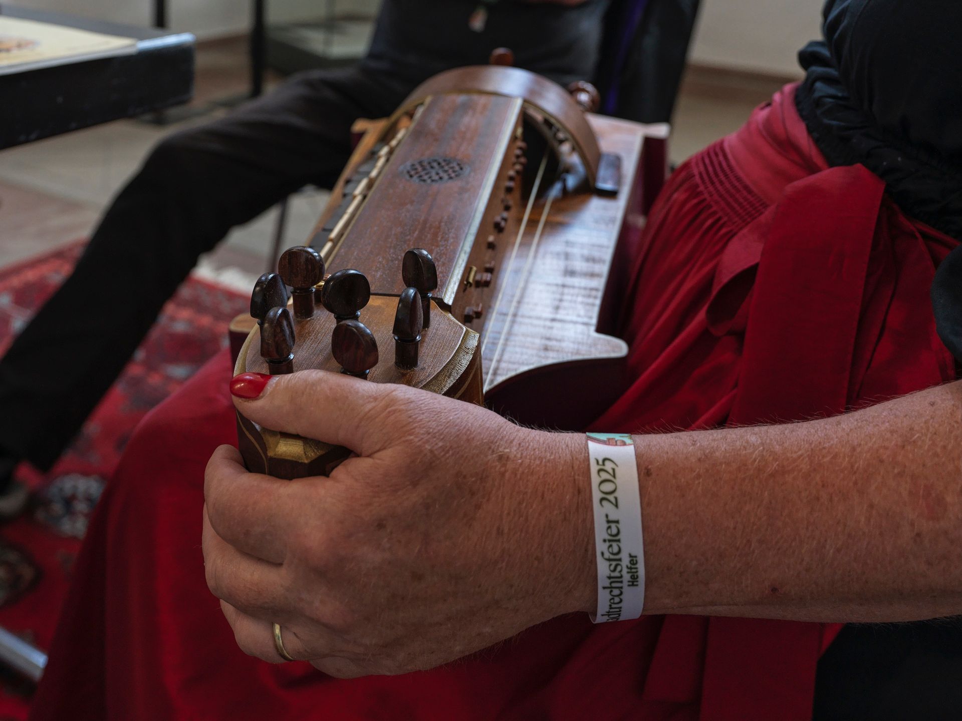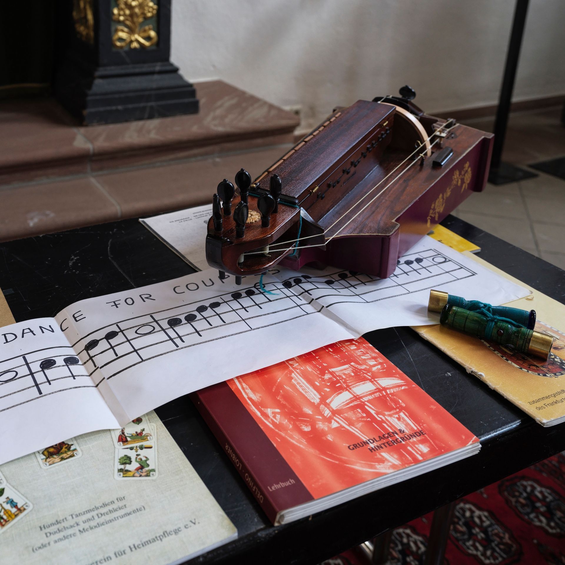 Mit einem „Dance For Couplets“ kam der Dozent des Drehleier-Kurses Kurt-Walter Racky am Samstag Nachmittag, den 28.06.2025, in der ehemaligen Synagoge Gelnhausen bereits nach kurzer Zeit der Einführung in Technik, Stimmen und Historie des alten Instruments zum gemeinsamen Musizieren. Die gesangliche Melodie mit der leier-typischen Bordunbordunbegleitung, schnell interessant und wirkungsvoll tänzerisch akzentuiert, löste sofort eine enorme Spielfreude bei den Teilnehmern aus.