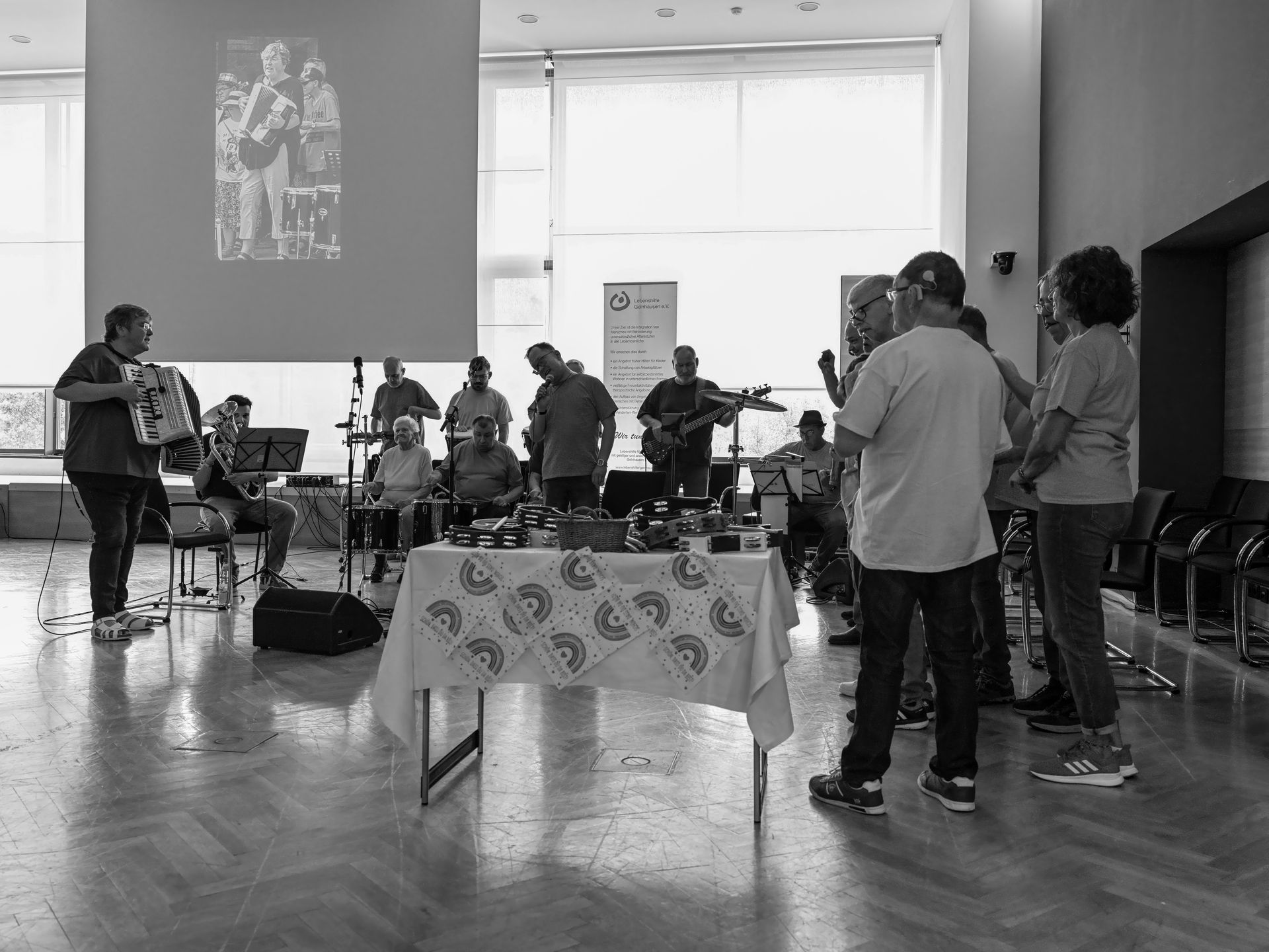 Über 100 Teilnehmerinnen und Teilnehmer waren in einem Orchester Kunterbunt, unserem Angebot für die Kleineren, in einer Tastenwerkstatt, einem Ensembleangebot für das Zusammenspiel in einer Gruppe von Pianistinnen und Pianisten, in einer gemischten Holz- & Blechbläserklasse sowie den RainbowSingers, einem überregionalen Inklusionsprojekt und einer großen Rockband mit Blas- und Streichinstrumenten und dem üblichen Rock-Instrumentarium beteiligt. Ein großer Erfolg vor zahlreichen begeisterten Besuchern.