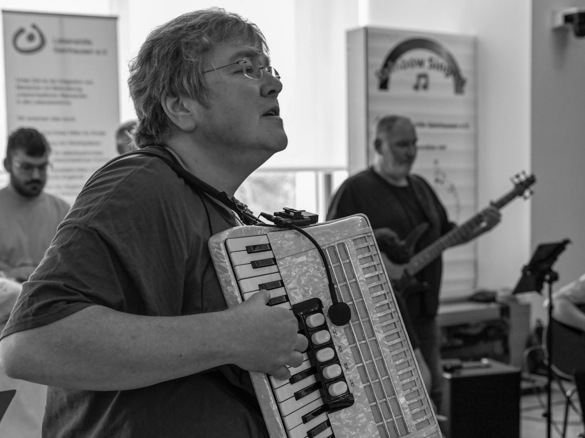 Unsere stimmungsvollen, sehr eigen arrangierten Songs, groovig-unplugged vorgetragen, gaben der Atmosphäre die nötige besinnliche Stimmung.