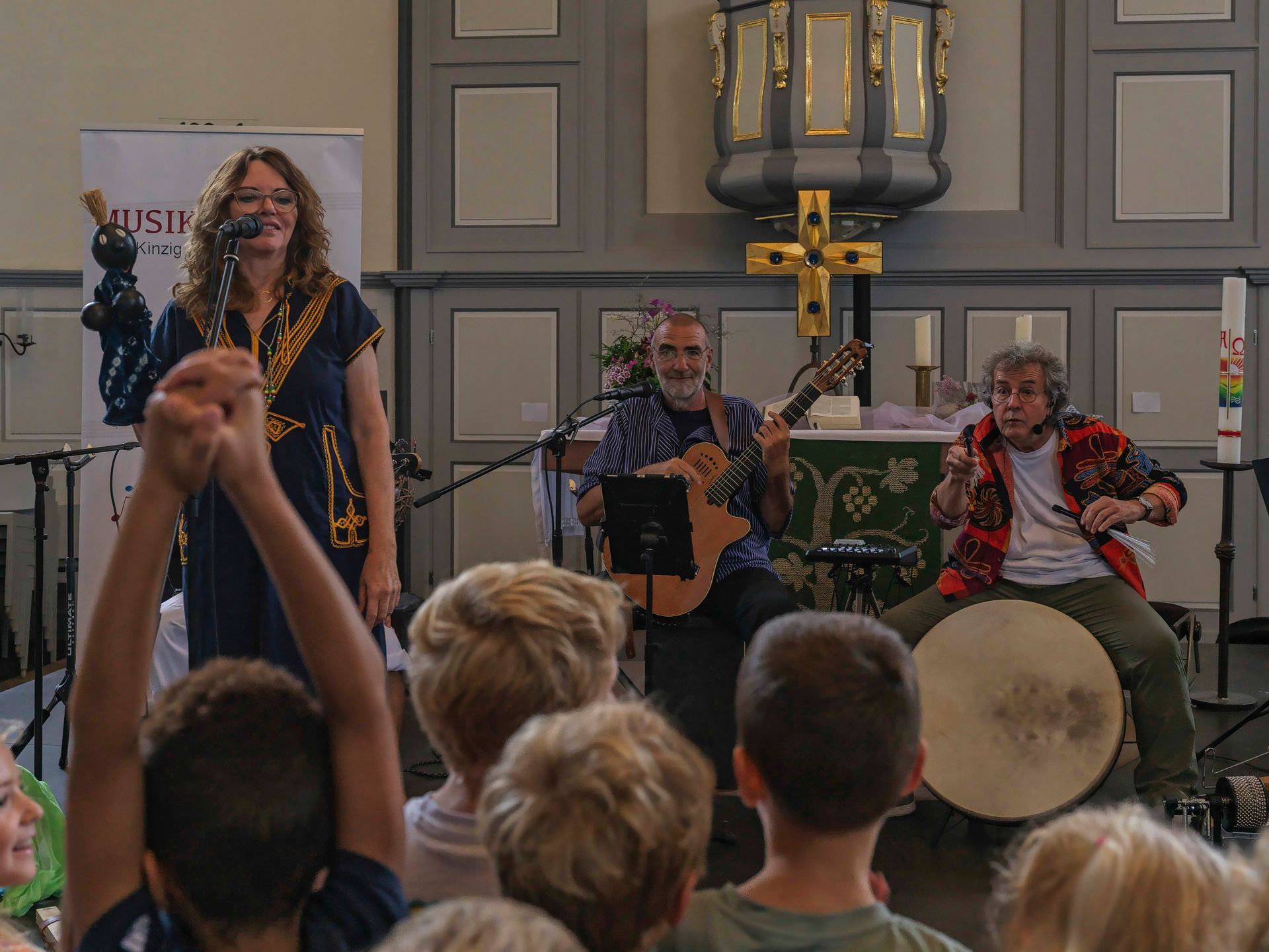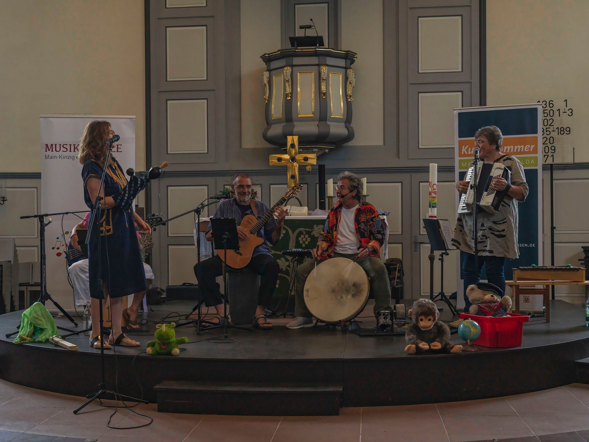 Letztes Testen, Konzentrieren und Stimmen kurz vorm Raustreten ins Rampenlicht der St. Markus Kirche Altenmittlau