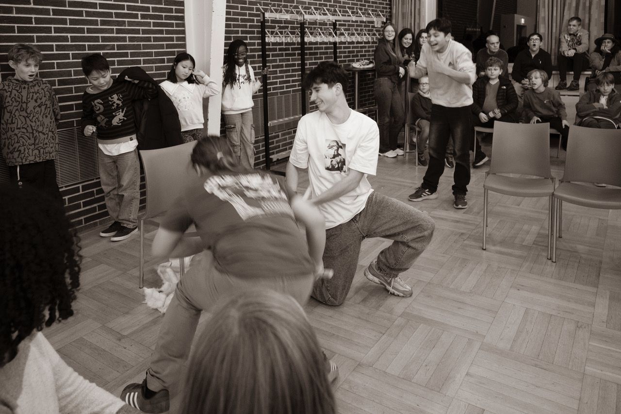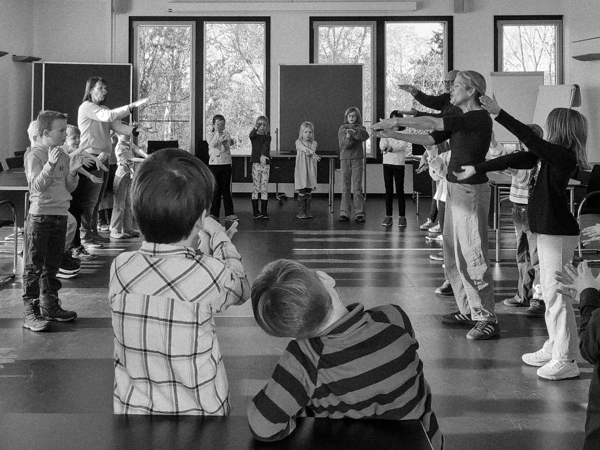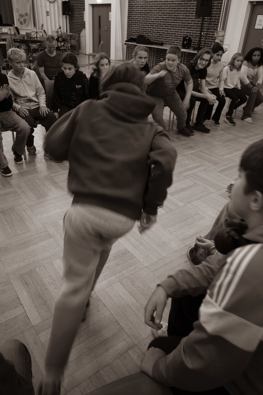 Eine völlig neue Erfahrung, waren doch Improvisation und Fantasie gleichermaßen großgeschrieben. Anfangs war dies womöglich für Einige noch fremd, während die Gruppe allerdings am Sonntagnachmittag geschlossen selbstsicher und sehr überzeugend vor ihr Publikum trat, um in einer Werkstatt-Präsentation das Ergebnis der kreativen, anstrengenden und sehr emotionalen zwei Tage vorzustellen. Entsprechend groß war der Anklang bei den Familien und interessierten Gästen. Nach einer kurzweiligen Darbietung aus choreographiertem Chorgesang und Tanz in der großen Gruppe und dem szenischen Agieren in unterschiedlichen kleinen Formationen stand fest, das Projekt soll fortgesetzt werden. Darin war sich das bewährte Dozententeam, Mitwirkende, Eltern und die Musikschule einig.